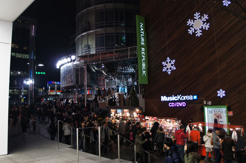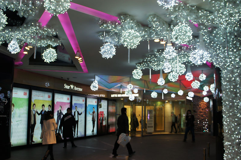 ロッテ百貨店前。クリスマスが終わっても気にしない店が多数。
