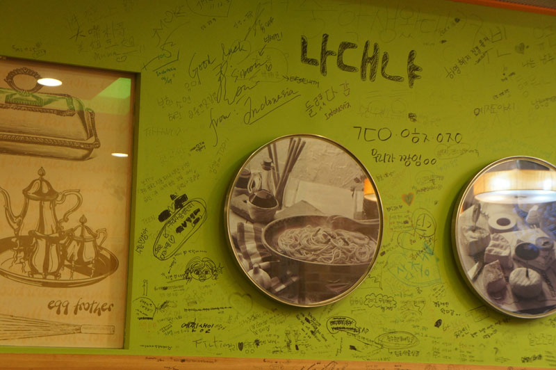 カップルがiPadで写真を撮っていてシュールだった。恥じらいと謙遜の国、日本では見られない光景。それにしても落書きがどこもひどいや。【ミョンドン】