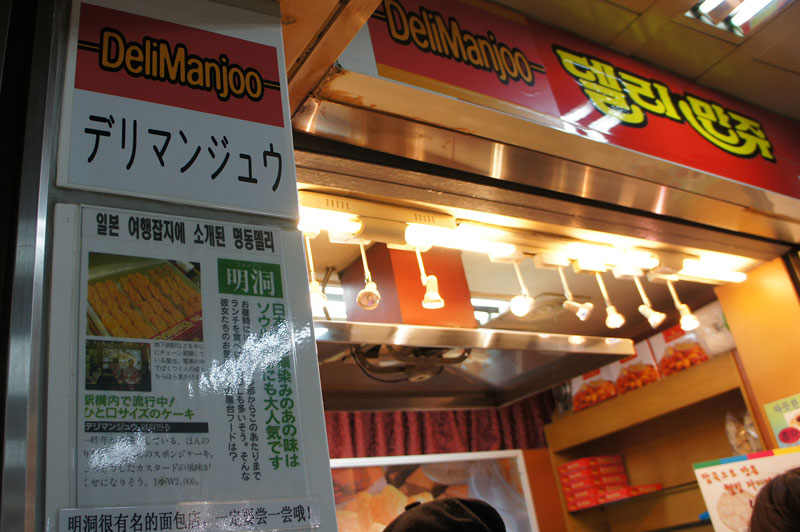 ミョンドン駅構内でデリマンジュウというトウモロコシ型の今川焼みたいなお菓子を購入し、いい香りを漂わせながらこの旅初めての地下鉄へ。