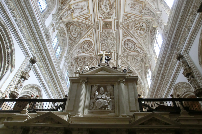赤レンガと石灰岩を組み合わせた二重のアーチが延々と続く中、キリスト教色の強い天井が表れたり。