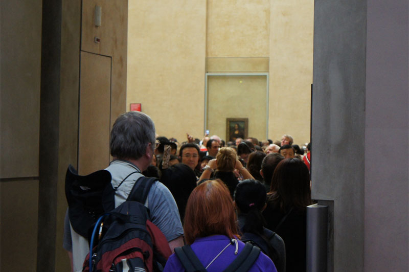笑っちゃうほど混雑しているモナリザの部屋へと進む。満員電車のよう。