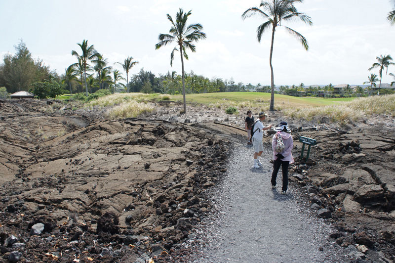ホテル内のゴルフ場のすぐ隣にあるKing's Trailという道でペトログリフ(岩絵)を見ることが出来る。【ヒルトン・ワイコロア・ビレッジ】