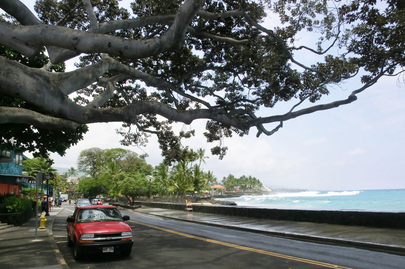 帰国する荷物をまとめ、ハワイ島西部のカイルアコナのメインストリートであるアリードライブを散策。
